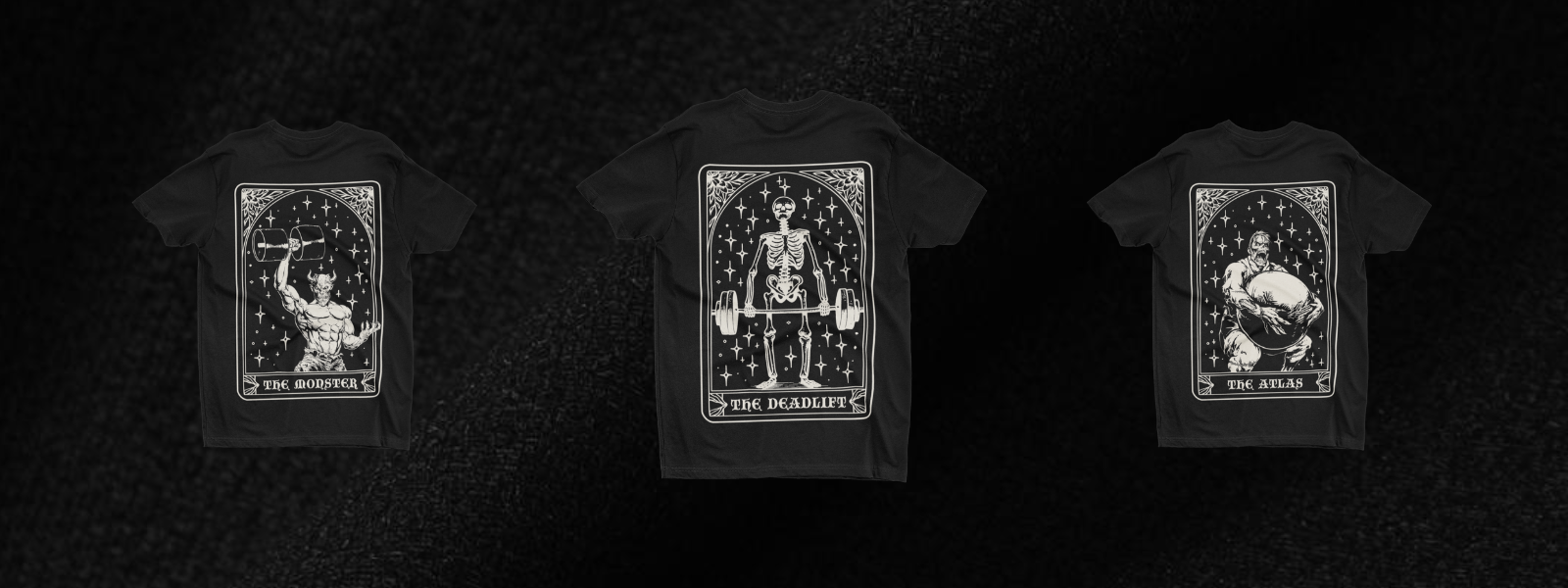 Shop gym clothing inspired by tattoo culture, metal, mysticism, and old-school lifting – built for serious training and serious personality.